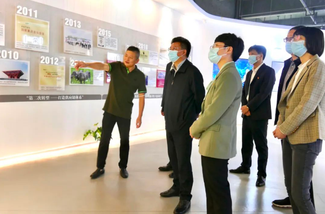 在青蓮數(shù)字展廳,暨軍民一行詳細(xì)了解了青蓮全產(chǎn)業(yè)鏈的數(shù)字化布局。